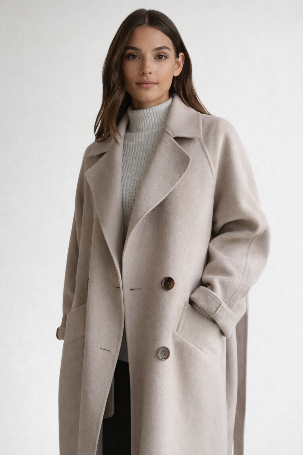 Este abrigo estilizado mezcla un formato sencillo con una apariencia pulida. Su longitud clásica, su tejido suave y su forma estilizada lo hacen perfecto para la mujer contemporánea que aprecia la comodidad y la elegancia.